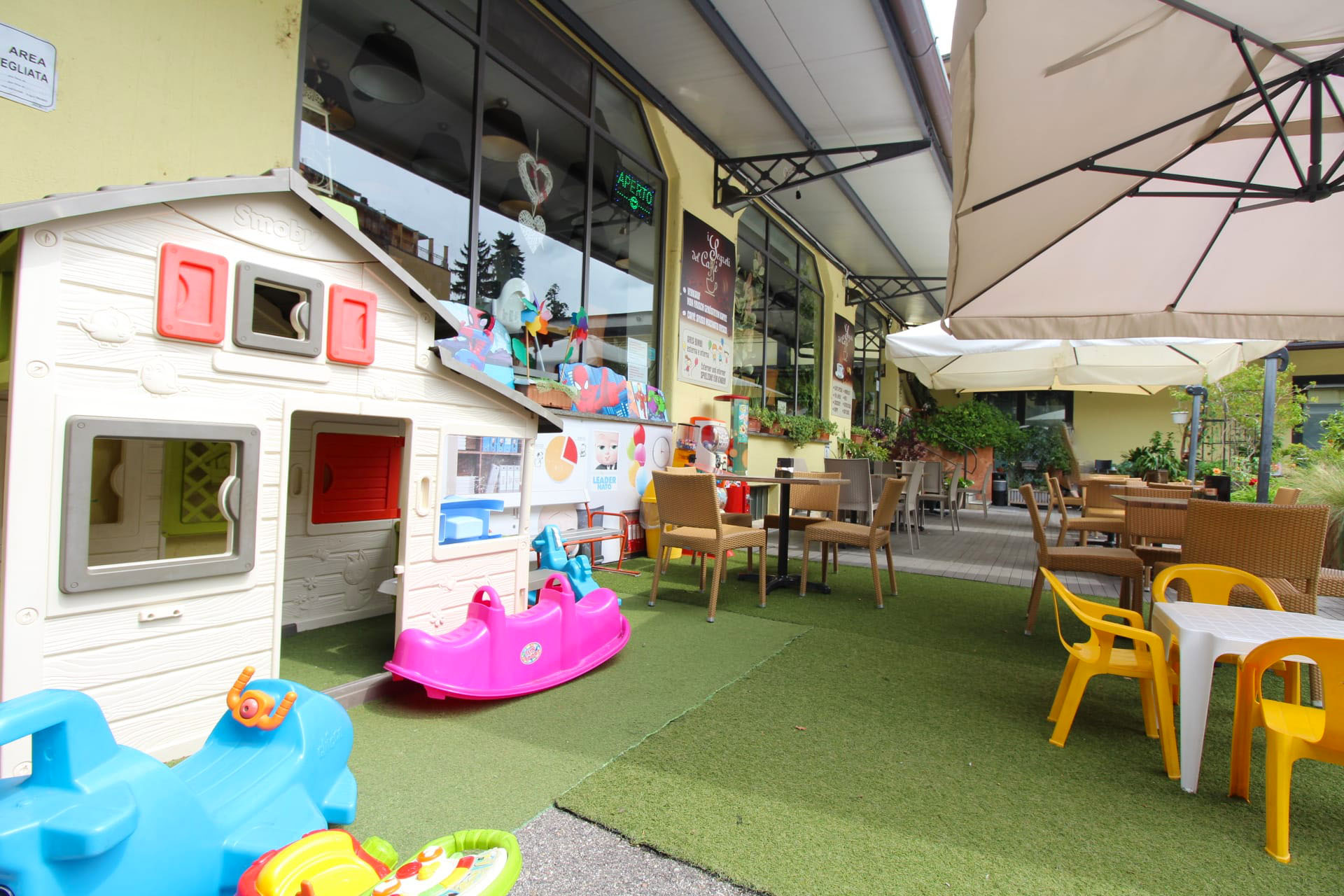 - Ampio spazio esterno: circa 40 posti a sedere e seconda area giochi