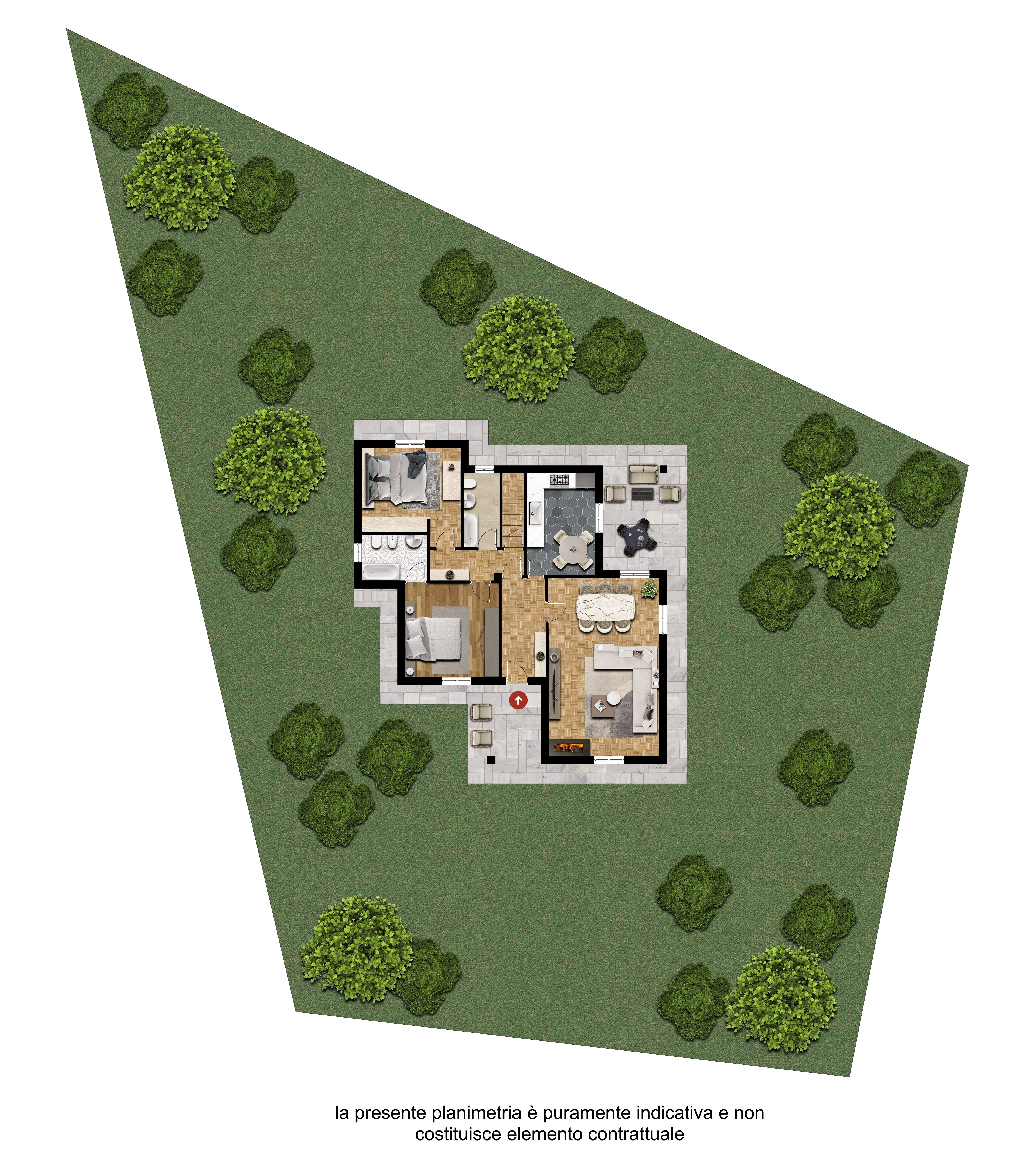 Fiore all’occhiello della villa è l’ampio giardino privato di circa 1.000 mq, un’oasi verde che garantisce assoluta privacy e regala un’atmosfera rilassante e senza tempo: il luogo ideale per vivere all’aperto, accogliere ospiti o semplicemente godersi la tranquillità della natura.